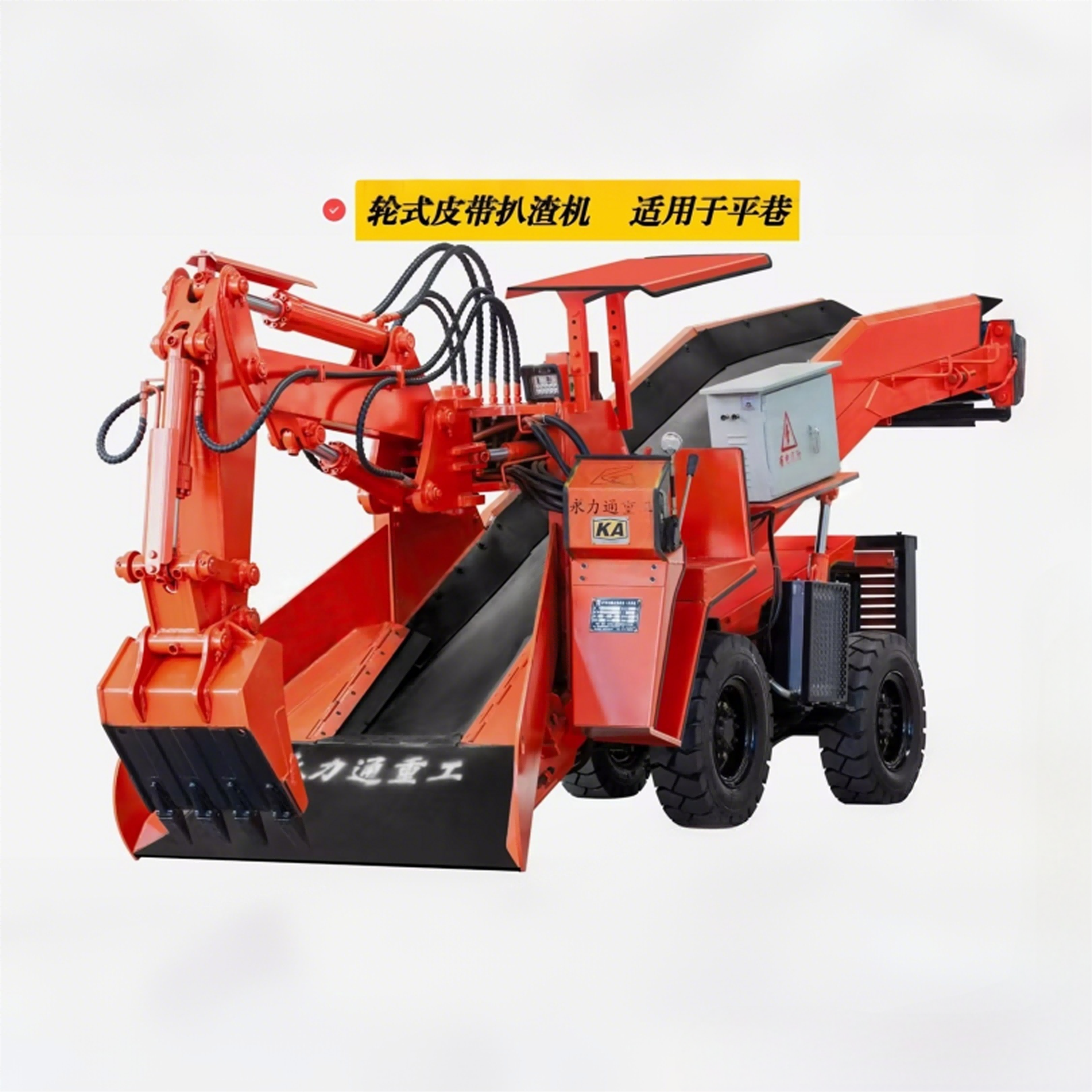 中式悬挂底盘,四轮驱动,131前后车桥,高低速分动箱,底盘架为双槽钢扣压式结构(强度更大),主电机为18.5千瓦花键电机配备花键油泵(输出功率为30兆帕,扒渣机操作只需15兆帕左右)BM–315花键行走马达(加装缓冲装置,相当于车的离合器),大小臂为流线型结构,大小臂油缸为带缓冲锻打一体油缸(活塞杆和拉耳之间没有焊接),28*9—15实心轮胎,龙门上下板为30mm锰钢构造,镶嵌式牛头底座(30mm锰钢),铲口为新式不带折弯式(16mm锰钢),挖斗采用二次构造,前半部和左右两边为耐磨板(增加耐磨度)后半部分为锰钢有韧性,中冷片式散热器(油温60度以内,液压油温过高机子操作无力),输送皮带为700mm宽六级耐阻燃皮带,皮带主动滚筒为液压滚筒,筒皮厚,力度大,故障率低,从动滚筒为内置轴承免维护滚筒,合肥长源操作阀。2025-05-15 -